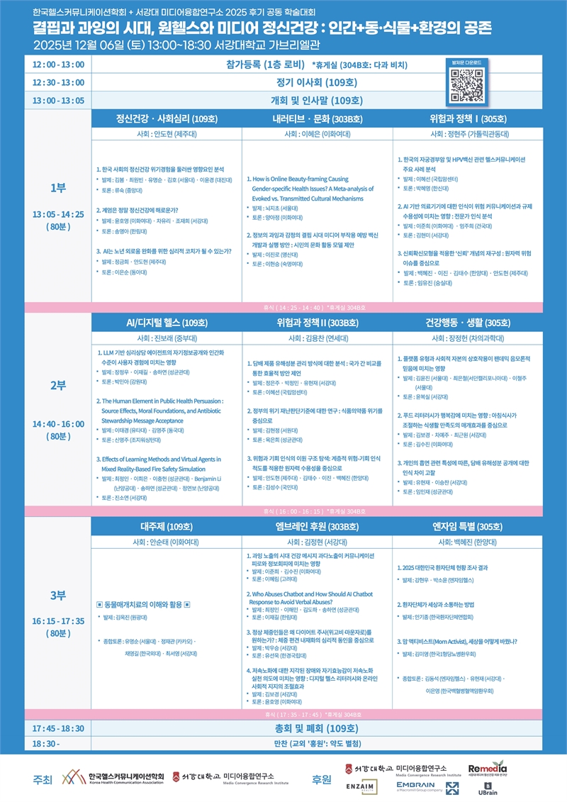한국헬스커뮤니케이션학회는 오는 6일 서강대학교에서 개최되는 ‘2025 후기 학술대회’에서 환자단체의 활동과 소통 전략을 다루는 특별 세션을 진행한다고 3일 밝혔다.이번 세션은 ‘환자단체, 그들은 세상을 향해 무엇을 외쳤나?’를 주제로 마련됐으며 환자 중심의 보건의료 개선에 기여하고 있는 국내 환자단체의 현황과 역할을 심층